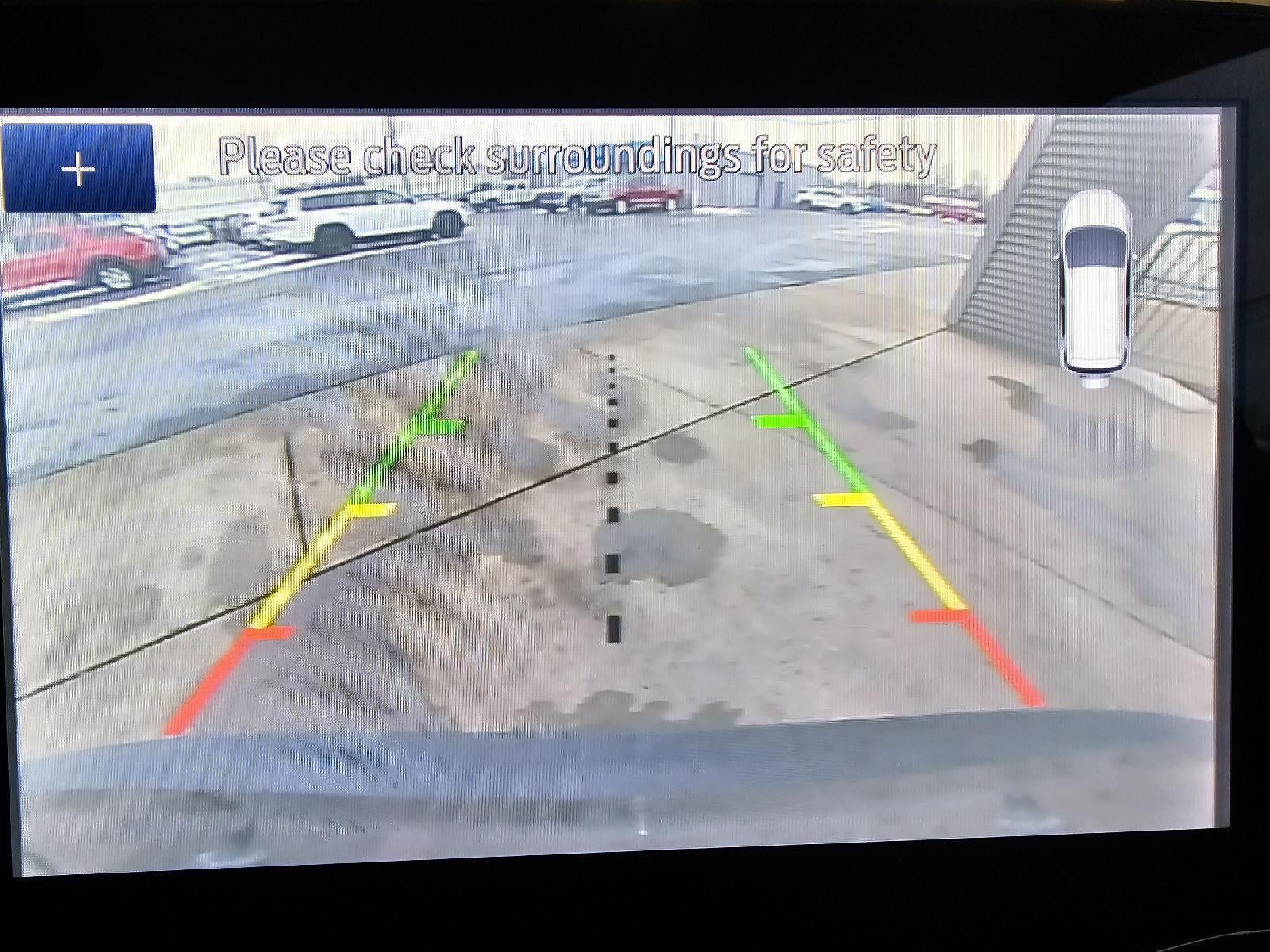 - The vehicle is equipped with a camera that displays an image of the area behind the vehicle on an interior display.