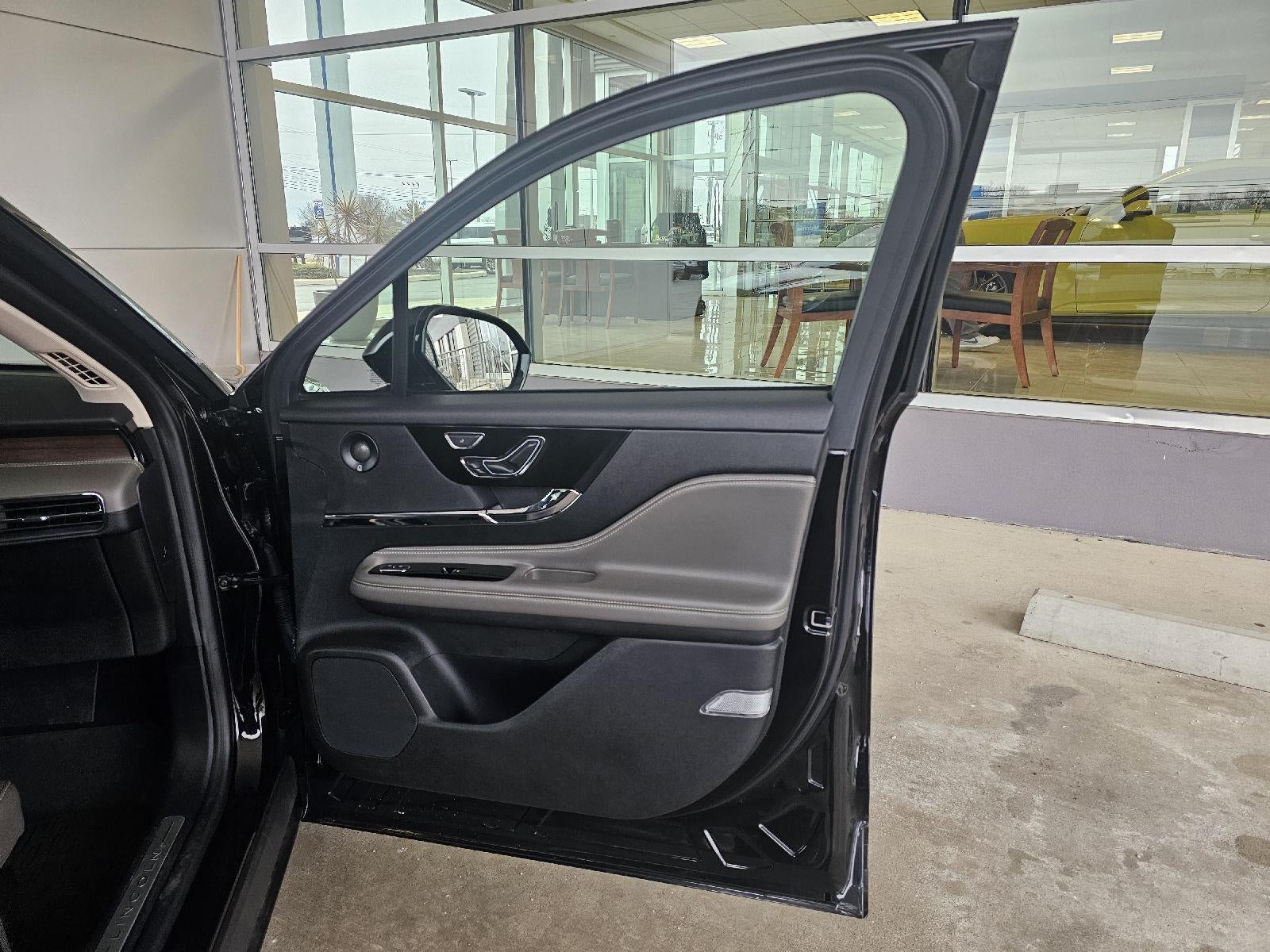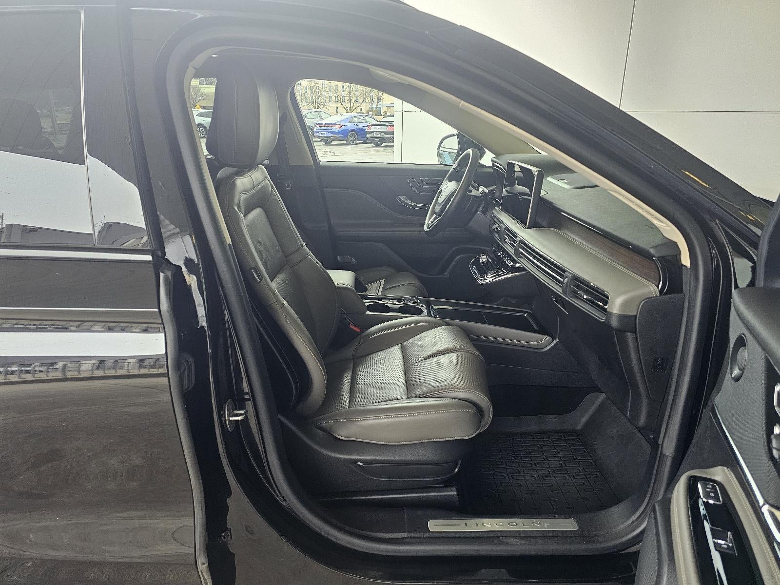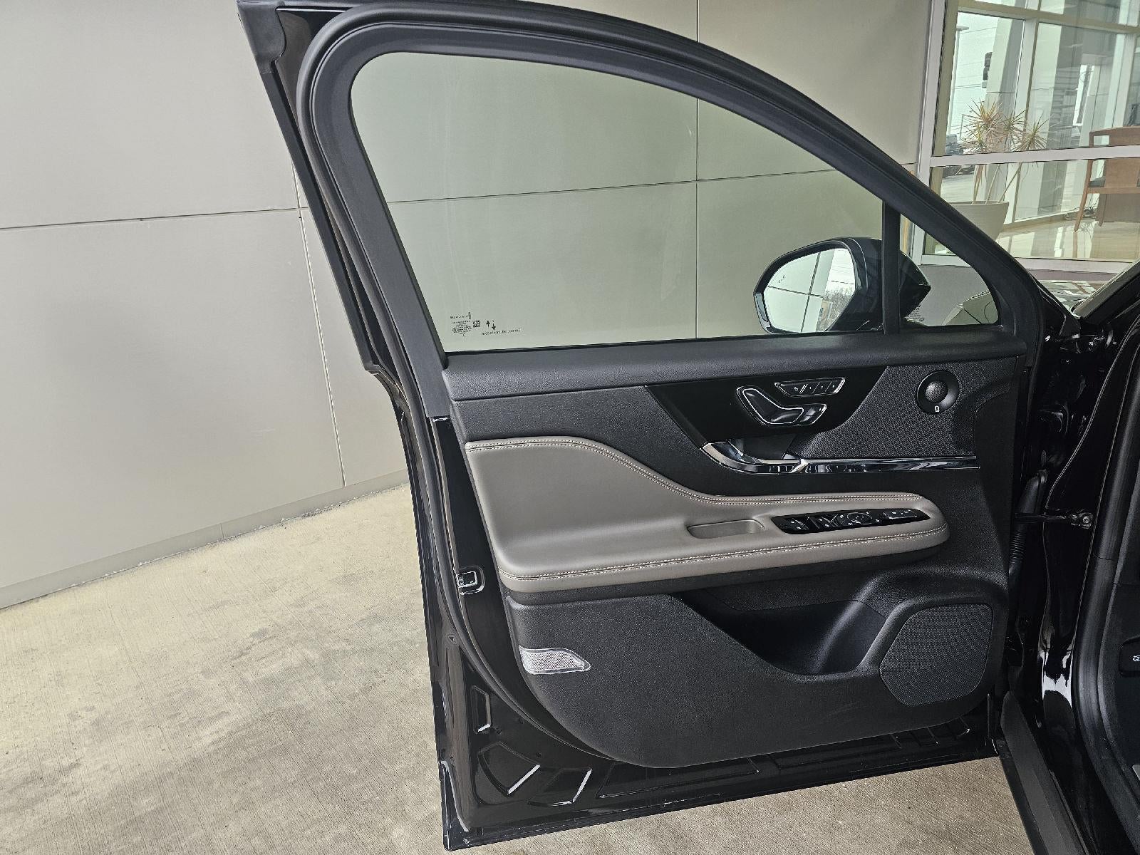 - Includes vehicle with standard equipment, hands free liftgate, rain sensing wipers, windshield wiper de-icer, power panoramic vista roof with one touch express open and close and power sunshade, auto air refresh with carbon high-efficiency pollen filter, frameless auto-dimming rearview mirror, universal garage door opener, heated/ventilated driver and passenger seats, heated rear seat, 60/40 EasyFold rear seat with power seatback release, power tilt/telescoping steering column with memory, heated steering wheel, wireless charging pad, adaptive suspension, power adjustable and power-folding heated auto-dimming sideview mirrors with Autofold, driver/passenger side memory, black mirror caps with turn signal indicators, Lincoln logo welcome mat, Revel audio system with 14 speakers including subwoofer, HD radio, head-up display, phone-as-a-key, Lincoln BlueCruise 1.2 with lane change assist and in-lane repositioning, Active Park Assist 2.0 with front parking aid, Intersection Assist 2.0, and driver state monitoring camera.