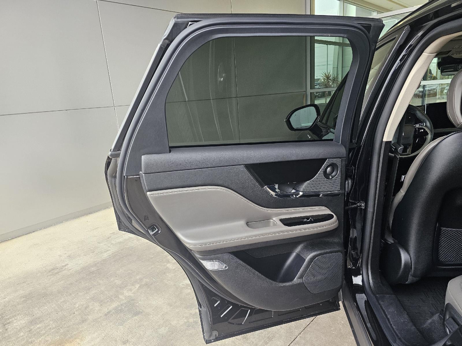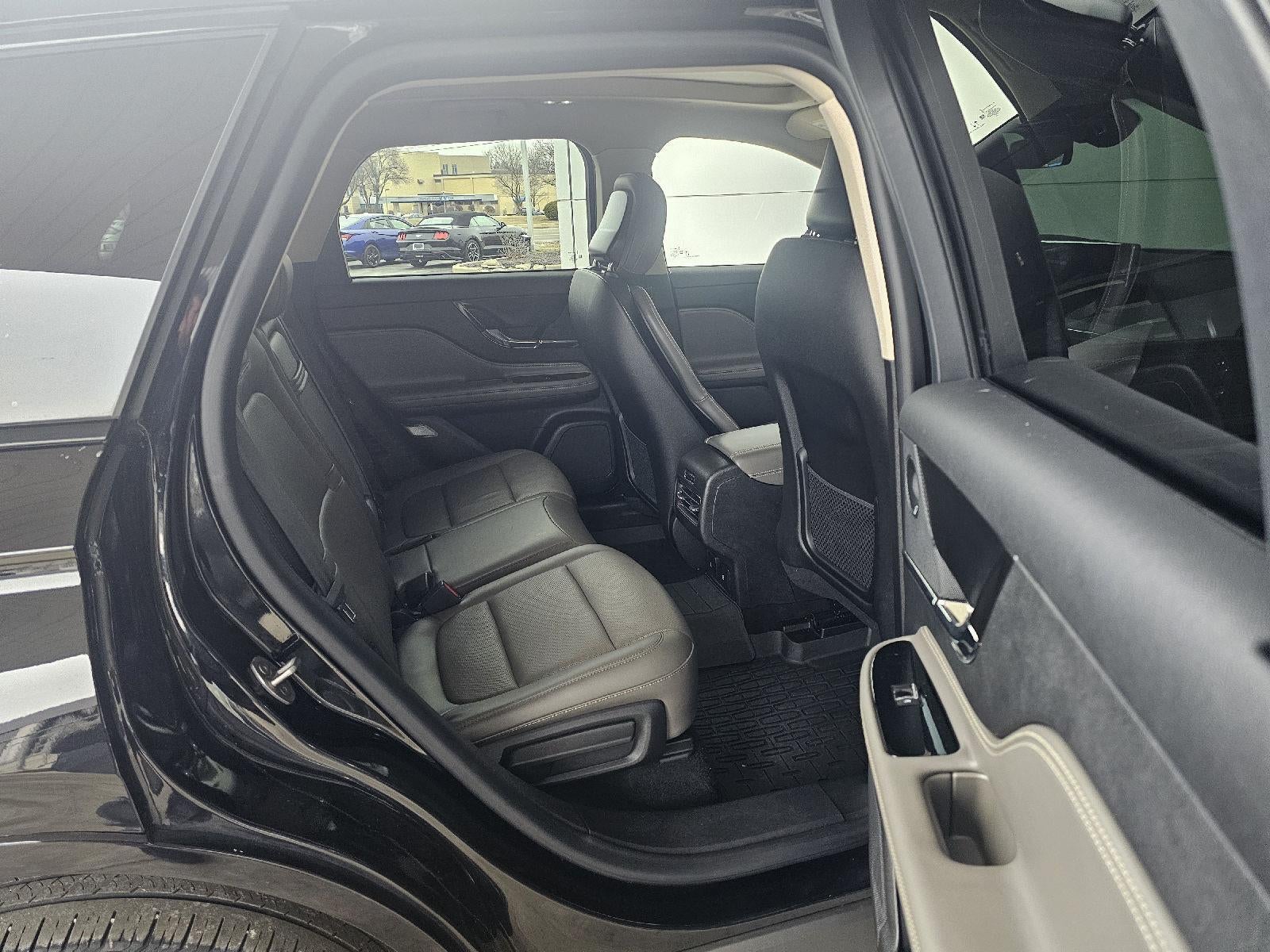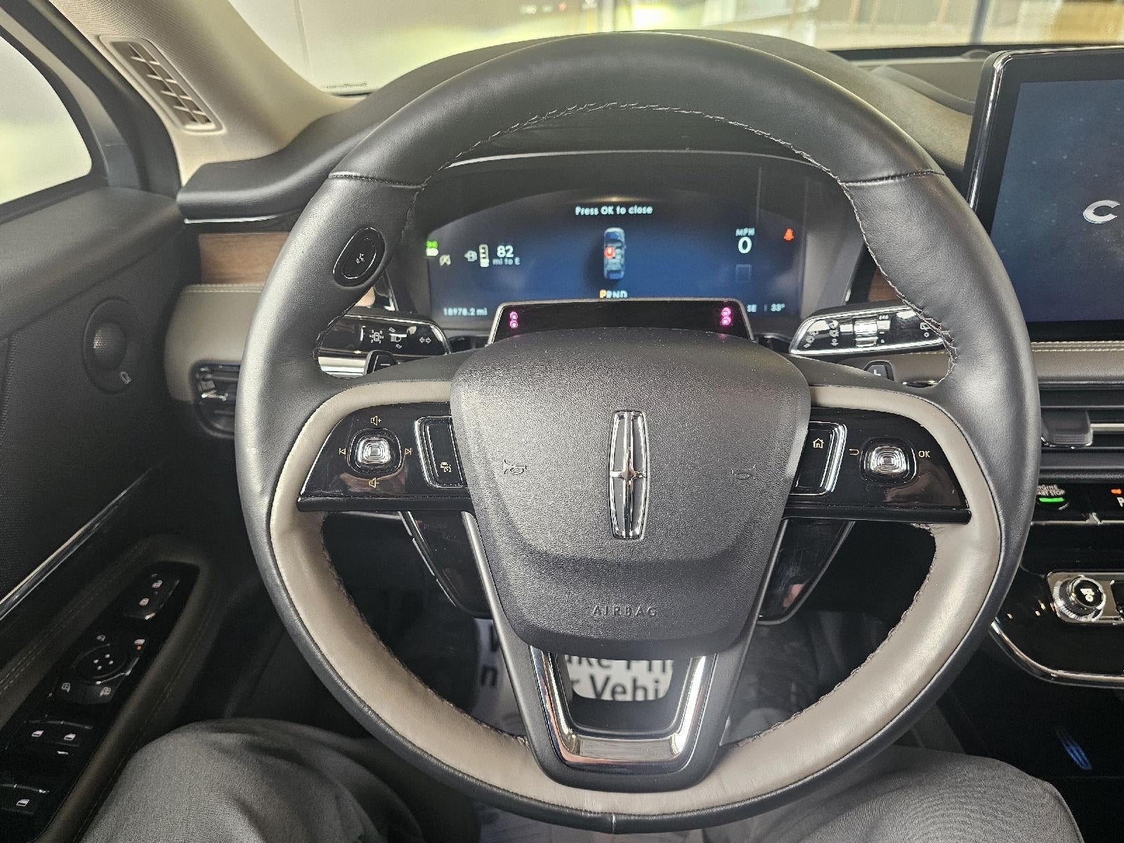 - Includes vehicle with standard equipment, hands free liftgate, rain sensing wipers, windshield wiper de-icer, power panoramic vista roof with one touch express open and close and power sunshade, auto air refresh with carbon high-efficiency pollen filter, frameless auto-dimming rearview mirror, universal garage door opener, heated/ventilated driver and passenger seats, heated rear seat, 60/40 EasyFold rear seat with power seatback release, power tilt/telescoping steering column with memory, heated steering wheel, wireless charging pad, adaptive suspension, power adjustable and power-folding heated auto-dimming sideview mirrors with Autofold, driver/passenger side memory, black mirror caps with turn signal indicators, Lincoln logo welcome mat, Revel audio system with 14 speakers including subwoofer, HD radio, head-up display, phone-as-a-key, Lincoln BlueCruise 1.2 with lane change assist and in-lane repositioning, Active Park Assist 2.0 with front parking aid, Intersection Assist 2.0, and driver state monitoring camera.