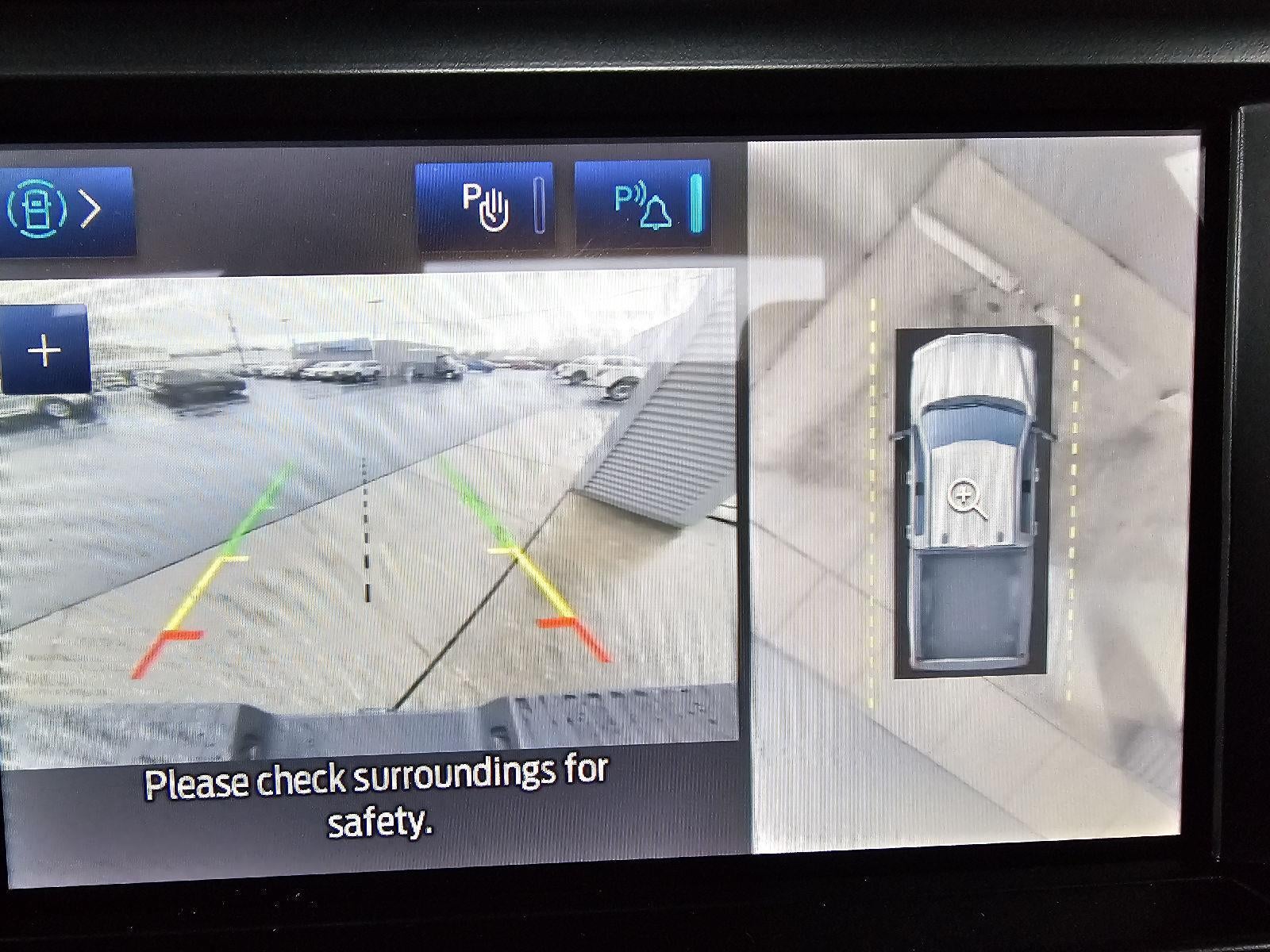 - The vehicle is equipped with a camera that displays an image of the area behind the vehicle on an interior display.
